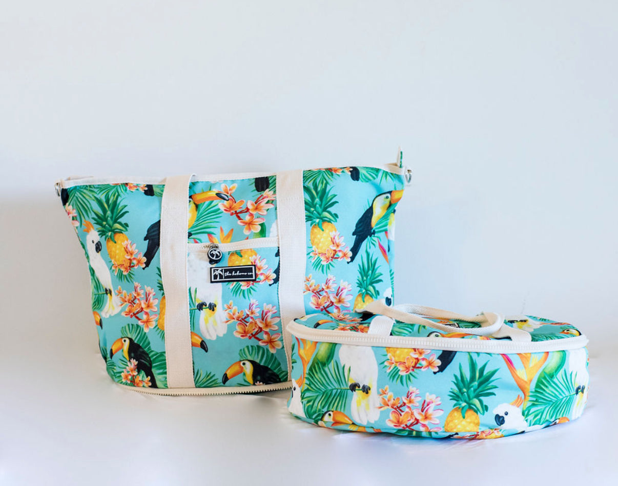 This two-in-one bag is designed with a detachable insulated bottom panel, durable polyester and a custom-made PVC lining.